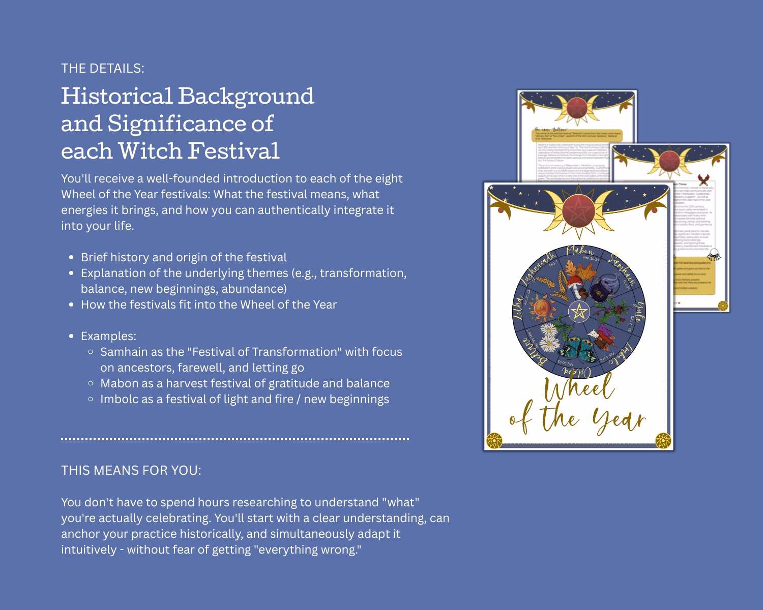You often have to sift through countless sources to find reliable information about the eight Wheel of the Year festivals: Without structured guidance, the research feels overwhelming – especially if you’re a beginner on your spiritual path
